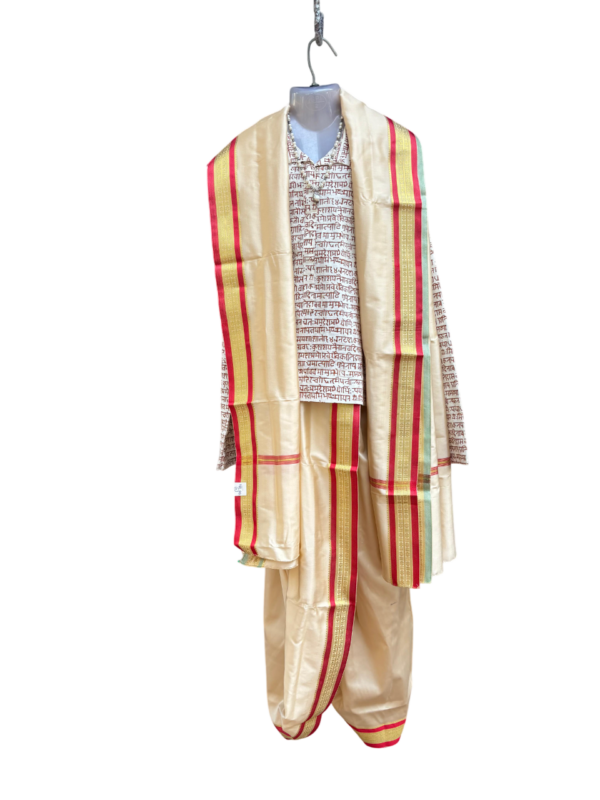 Stitched Pooja Dhoti known as Kad or Sovale + uparne (scarf) set for boys. Perfect attire for festivals and traditional functions.