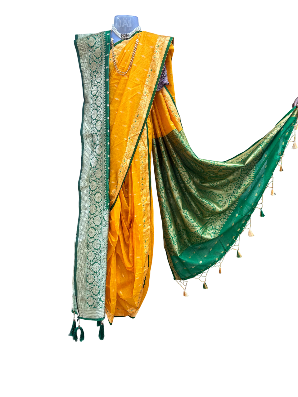 If you like less pleats in the nauwari ocha then this style is for you. Also, rather than tucking just a pinch of cloth, the ocha is pleated like kashta and is then tucked in the waist. In all other aspects, it is same as Peshwai style.